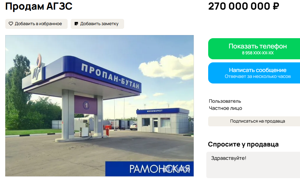 Продавец предлагает покупателю полный пакет сопроводительных документов, включая лицензию на деятельность. В качестве дополнительных условий предусмотрена возможность работы под франшизой, а также доступ к собственным базам для закупки и хранения газа. По заверениям автора объявления, расчетный срок окупаемости инвестиций в данный актив составляет от шести до восьми лет.