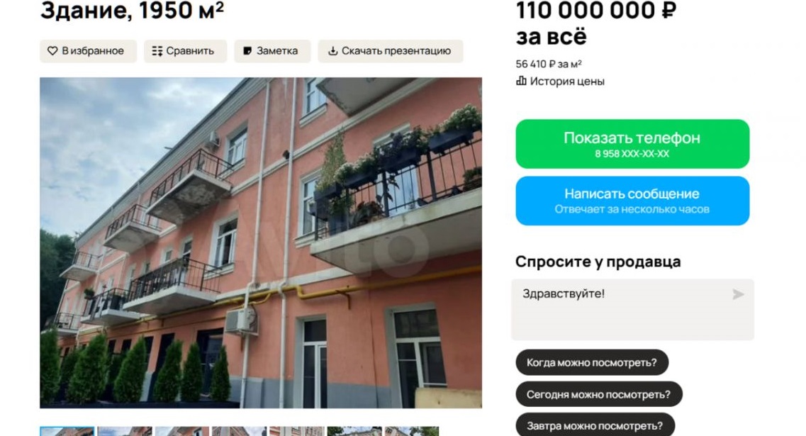 Знаменитый воронежский особняк, известный как «Дом Маршака», снова сменил стоимость. По данным объявления на популярной торговой площадке, цена объекта снижена с первоначальных 230 до 110 миллионов рублей, что более чем в два раза дешевле.