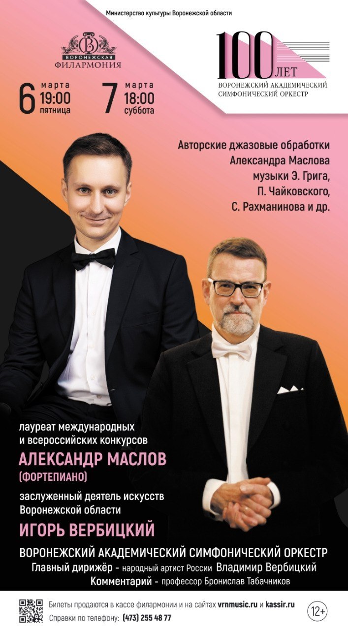 6 и 7 марта в Воронежской филармонии состоится мировая премьера Фантазии «Алеко» на темы Сергея Рахманинова в исполнении джазового и классического пианиста-виртуоза Александра Маслова. В программе также прозвучат аранжировки сочинений Чайковского, Грига, а также фантазии на темы из фильмов «Аладдин» и «Великий Гэтсби».