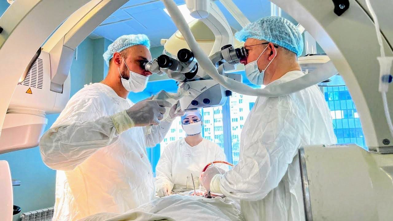 После стабилизации состояния, вызванного ушибами внутренних органов, пациенту потребовалось хирургическое вмешательство. Бригада нейрохирургов под руководством заведующего отделением Максима Сахарова провела операцию – транспедикулярную фиксацию. С помощью навигационной станции и микроскопа врачи установили специальные винты в тела позвонков выше и ниже места перелома, закрепив конструкцию, которая надежно зафиксировала поврежденный участок и восстановила анатомически правильную ось позвоночника.