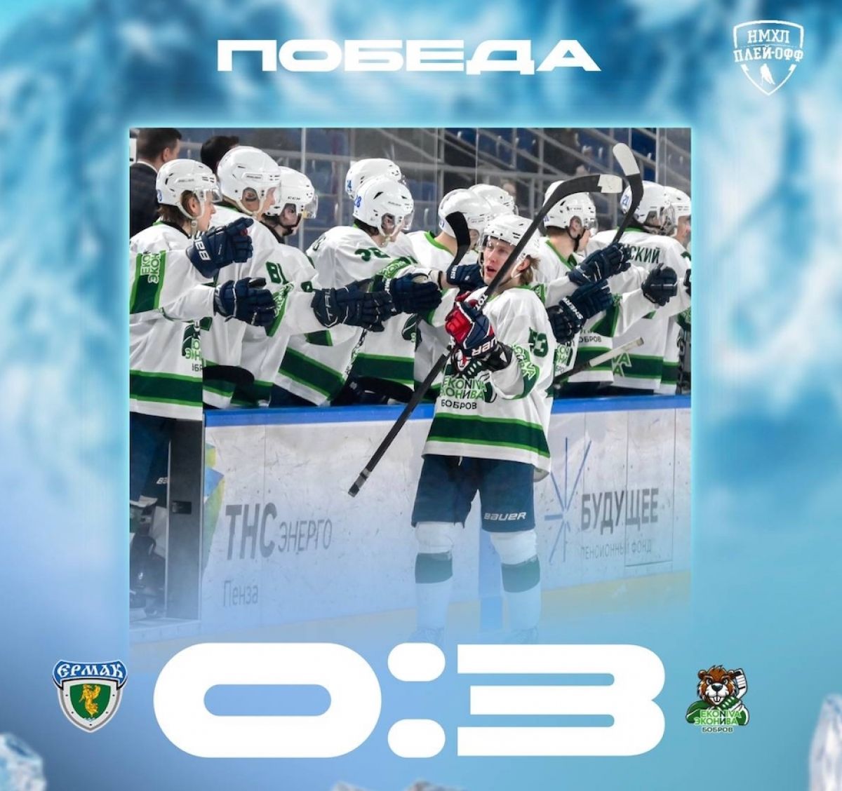 В плей-офф Национальной молодежной хоккейной лиги продолжаются сражения за Кубок регионов. В рамках 1/4 финала состоялся второй матч противостояния между ангарским «Ермаком» и ХК «ЭкоНива-Бобров» из Воронежской области. Первая игра осталась за хозяевами, но гостям удалось восстановить равновесие в серии.