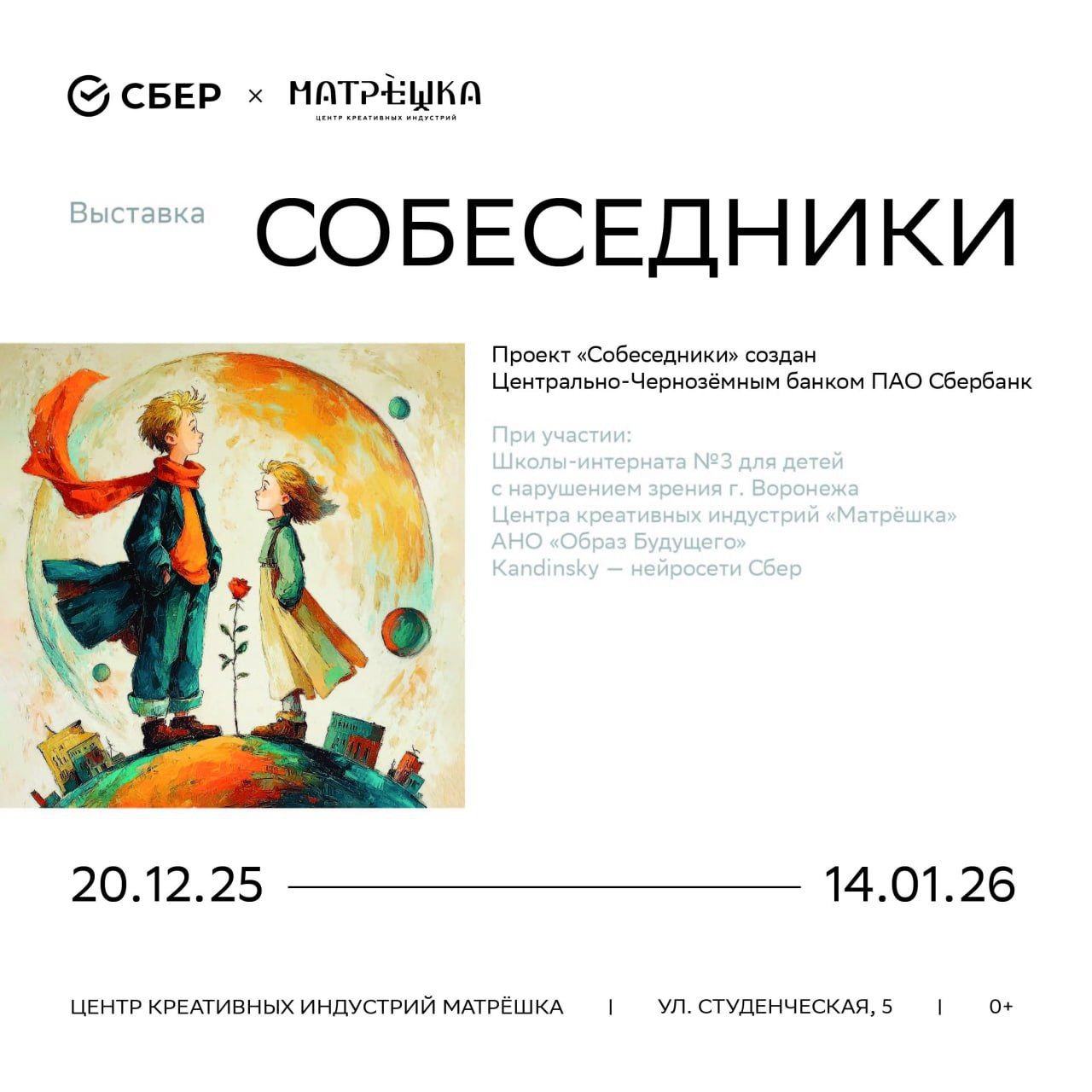 В воронежской галерее «Матрешка» начала работу уникальная выставка цифровых произведений «Собеседники». В основе проекта лежит диалог между воспитанниками школы-интерната №3 для обучающихся с ограниченными возможностями здоровья и учащимися курса «Дизайн» ШКИ «Матрешка».