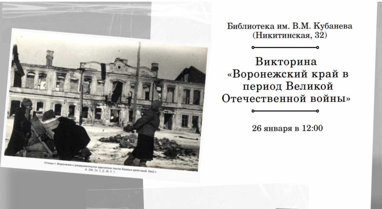 26 января в 12:00 библиотека имени В.М. Кубанева приглашает на тематическую викторину «Воронежский край в период Великой Отечественной войны».
