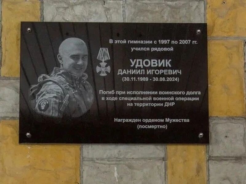 Даниил Удовик героически погиб при выполнении боевой задачи 30 августа 2024 года. За проявленное мужество Президент России Владимир Путин наградил его посмертно Орденом Мужества. На церемонии открытия памятной доски присутствовали родные бойца, его учителя, ученики гимназии и ветераны.