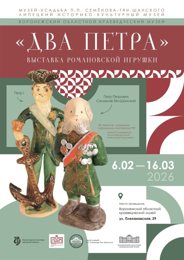 Центральными образами экспозиции станут два великих исторических деятеля: основатель регулярного флота царь Петр I и русский географ-путешественник Петр Семенов-Тян-Шанский. Их образы будут представлены в необычном формате – через традиционную романовскую игрушку, переосмысленную современными мастерами-керамистами.